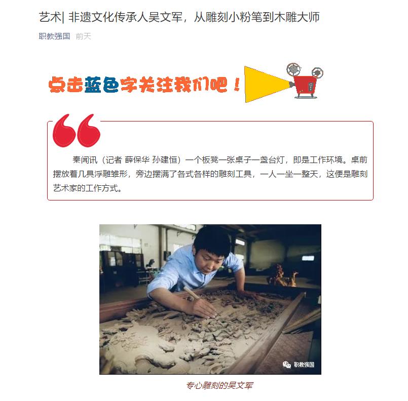 【职教强国】艺术| 非遗文化传承人吴文军,从雕刻小粉笔到木雕大师