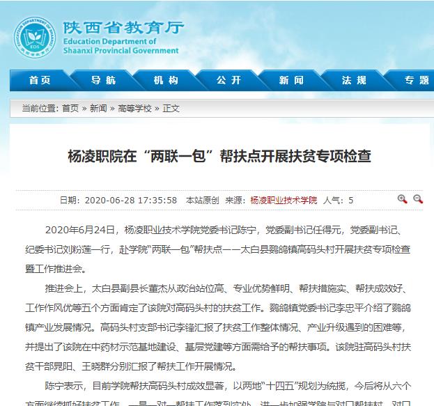【陕西省教育厅】杨凌职院在“两联一包”帮扶点开展扶贫专项检查