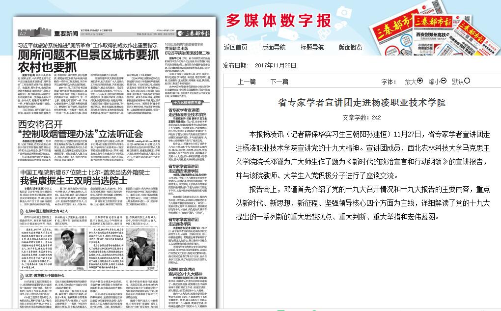 上一条:【陕西网】陕西省专家学者宣讲团走进杨凌职业技术学院