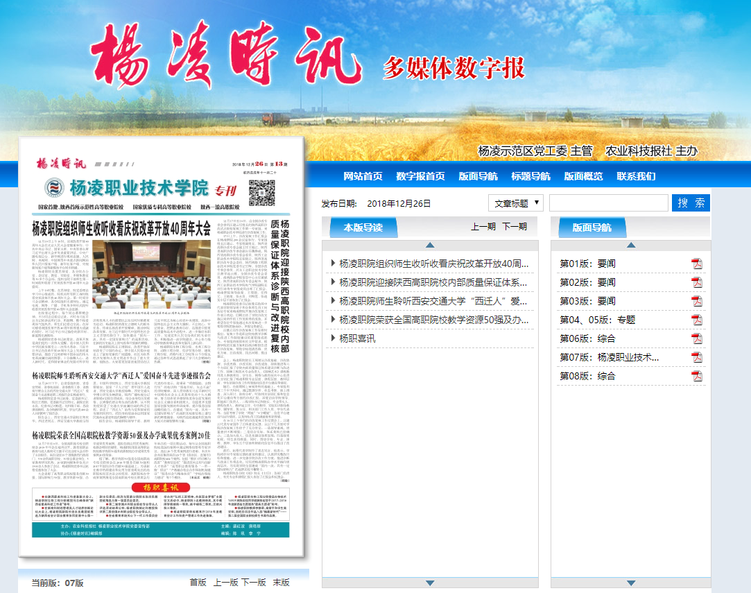 【杨凌时讯】杨凌职业技术学院专刊(第12期)