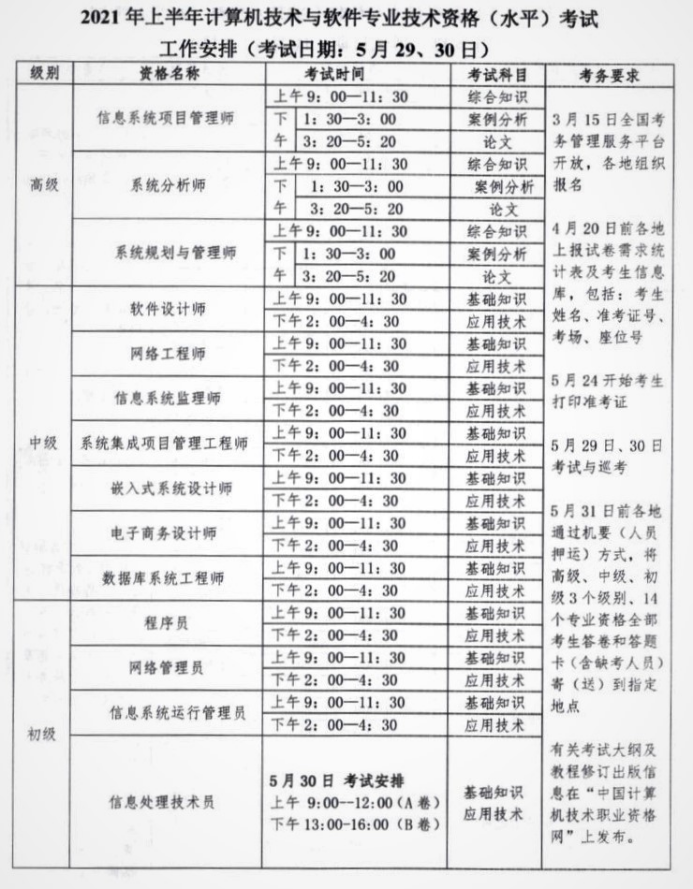 2021年上半年计算机技术与软件专业技术资格(水平)考试报名通知