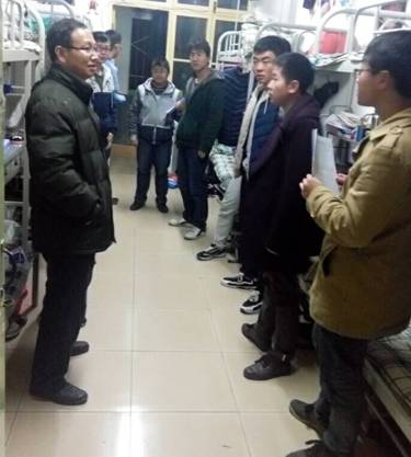 为了做好平安夜、圣诞节期间学生教育管理及安全稳定工作,防止各类事故的发生,保证学生安全和校园稳定,根据学院学保处相关通知精神要求,二〇一五年十二月二十四日晚21时,信息工程分院党总支书记高掌平及学工办全体人员、班主任深入宿舍走访看望学生并进行了相关宿舍安全检查。