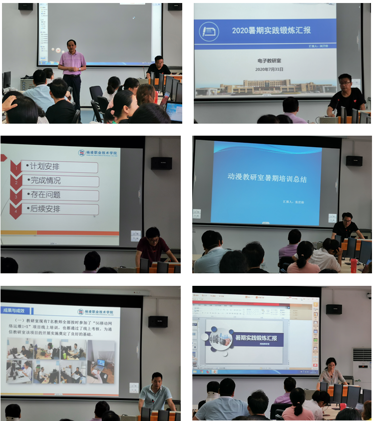 7月31日,信息工程分院教职工进入暑期校内集中实践锻炼第11天。上午,根据分院“双高”建设任务的统一安排,各教研室继续按计划完善任务,在规定时间内提交了暑期第一阶段各项任务成果。下午,分院全体教职工在醒钟楼D518实训室召开了分院“暑期实践锻炼阶段性经验总结交流会”。陈高锋院长主持了会议,电子技术教研室主任闵卫锋、软件技术教研室副主任刘元刚、动漫制作技术教研室副主任张世勋、通信技术教研室副主任冯春卫、网络技术教研室副主任刘明华分别介绍了本教研室在暑期实践锻炼第一阶段的任务开展情况,展示了锻炼成果,总结了工作中的不足以及后续工作安排。