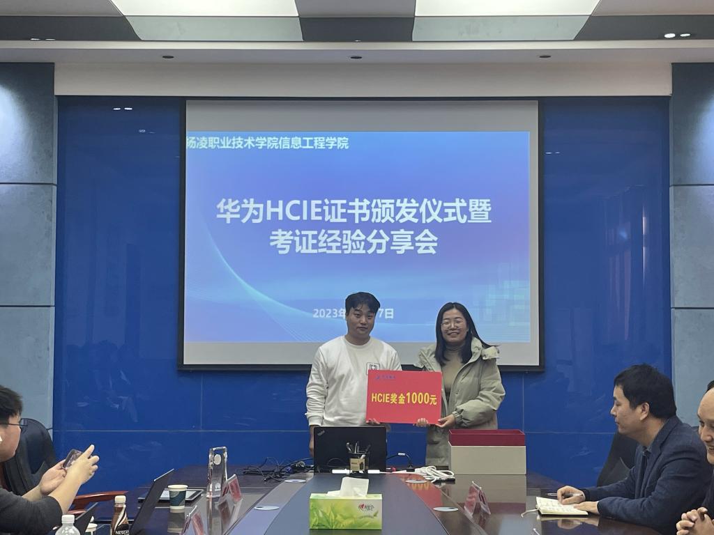 随后,讯方公司陕西省区教育业务代表王珊珊向黎愿同学颁发了HCIE现金奖励,并表示讯方公司选择向黎愿同学这样优秀的人才进行奖励,不仅是对黎愿同学专业能力的认可,也是对他未来发展潜力的期许,并希望激励更多同学取得更好成绩。讯方公司代表文娟为大家详细解读了华为认证体系,并表示华为认证不仅意味着在技术领域的专业能力得到了认可,更是对ICT人才综合能力、创新能力和职业素养的全面评估。