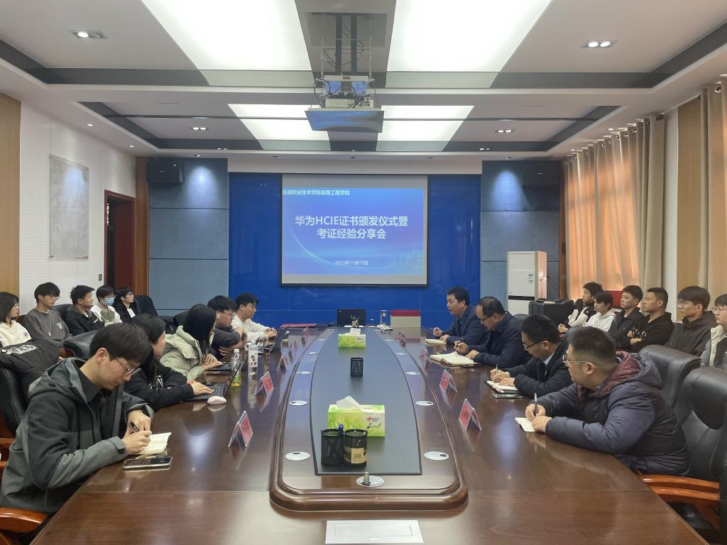 11月17日下午,信息工程学院在秦风楼四楼会议室举办华为HCIE证书颁发仪式暨考证经验分享会,学院院长陈高锋,副院长熊刚,部分师生以及深圳讯方技术股份有限公司代表参会,会议由网络教研室主任冯春卫主持。