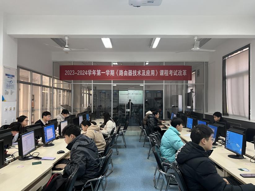 2024年1月11日上午8:30,我院现代通信技术专业2022级学生在安全与数通实训室(NOD-502)开展了《路由器技术及应用》课程改革考试,本次考试共设90分钟,其中包括仿真实验、真机实操和综合素养考核三部分内容。