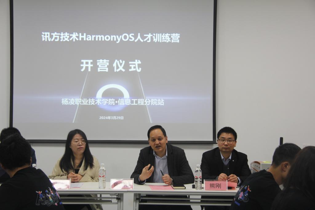 陈高锋代表学院向华为和讯方技术公司对本次活动的大力支持表示感谢,并表示华为技术公司作为通讯行业的领军企业,一直致力于自主创新和国产化发展,HarmonyOS作为华为推出的重要操作系统,在各个领域均展现出了优异的性能与潜力。陈高锋指出,希望参加训练营的全体同学珍惜此次培训机会,严格遵守课堂纪律,按照要求完成各项考核内容。