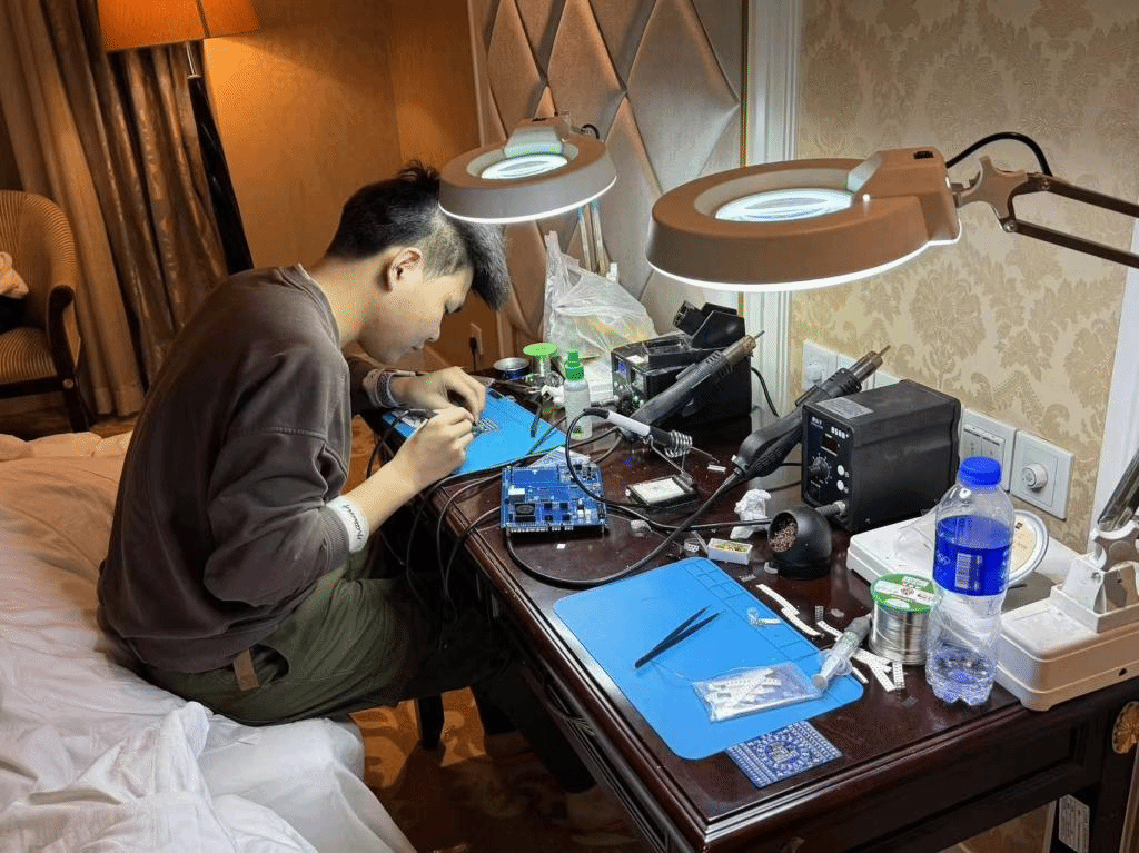 本次比赛历时两天,共10.5个小时,竞赛内容包括三部分:嵌入式系统硬件制作与驱动开发、嵌入式系统应用程序开发、嵌入式系统边缘计算应用开发。参赛选手需完成竞赛现场下发的嵌入式系统功能电路板(搭载国产自主嵌入式微处理器)的硬件制作和驱动程序开发与测试,再根据竞赛任务书编写相关嵌入式系统应用程序,使两个嵌入式智能车开发单元(A车、B车)在模拟智能化场景中完成各项赛道功能任务。该赛项目主要考核参赛选手嵌入式系统功能电路板硬件制作、手工焊接、故障排除、程序的设计与开发。