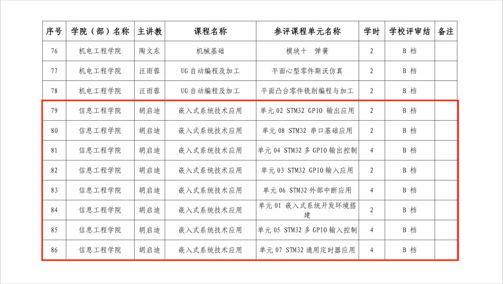 4月15日,杨凌职业技术学院2023年下半年校级“单元金课”评审结果公布,信息工程学院40个“单元金课”评审通过,其中A档9个,B档13个,C档18个。
