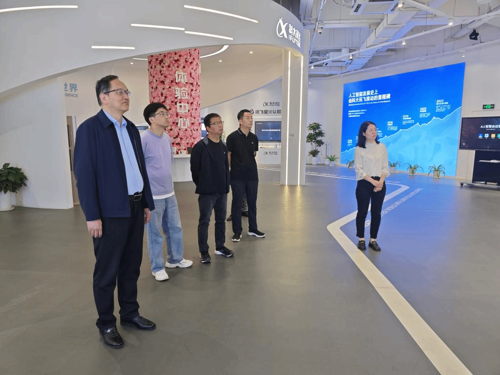 4月22日,信息工程学院院长陈高锋、副院长熊刚、网络教研室主任冯春卫、电子教研室主任闵卫锋、软件教研室副主任刘元刚赴科大讯飞丝路总部调研。