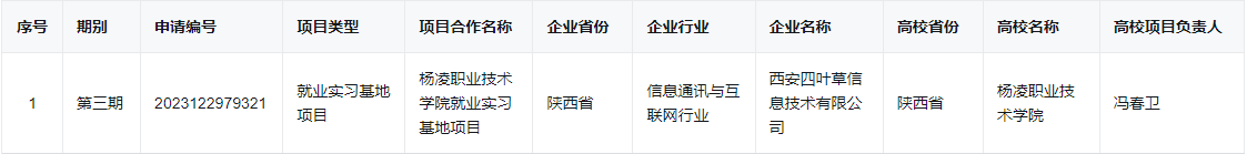 6月14日,教育部高校学生司发布《关于公布第三期供需对接就业育人项目立项名单的通知》(教就业司函〔2024〕23号),信息工程学院与北京新大陆时代科技有限公司联合申报的定向人才培养培训项目以及信息工程学院与西安四叶草信息技术有限公司联合申报的就业实习基地项目分别获得立项。