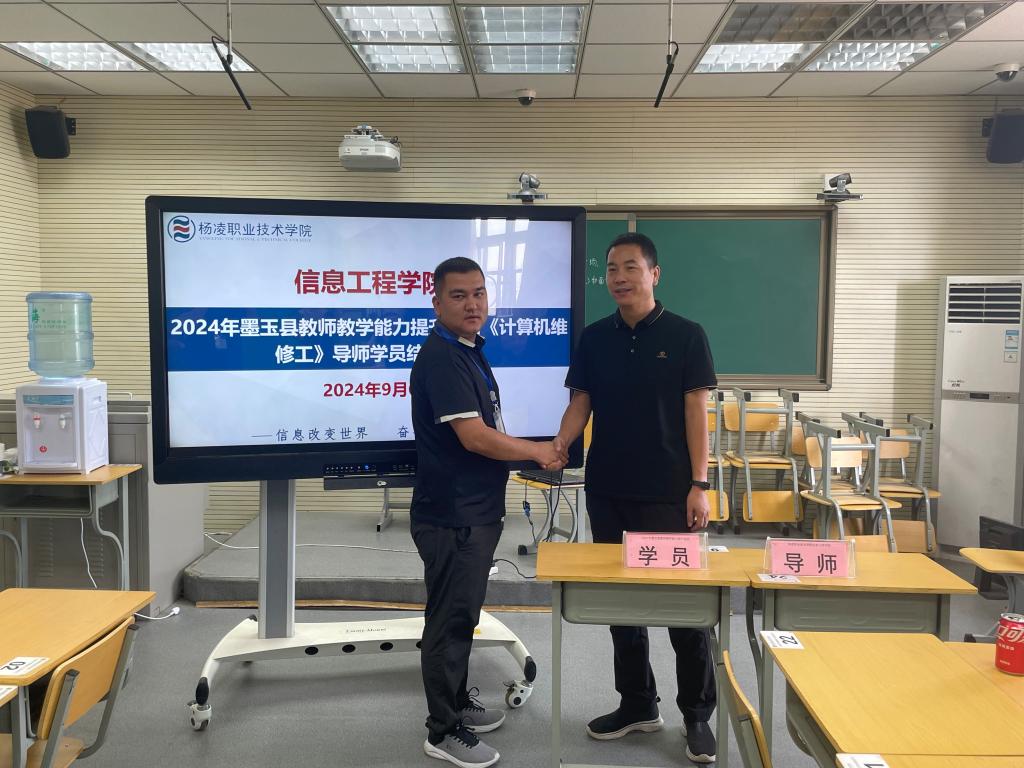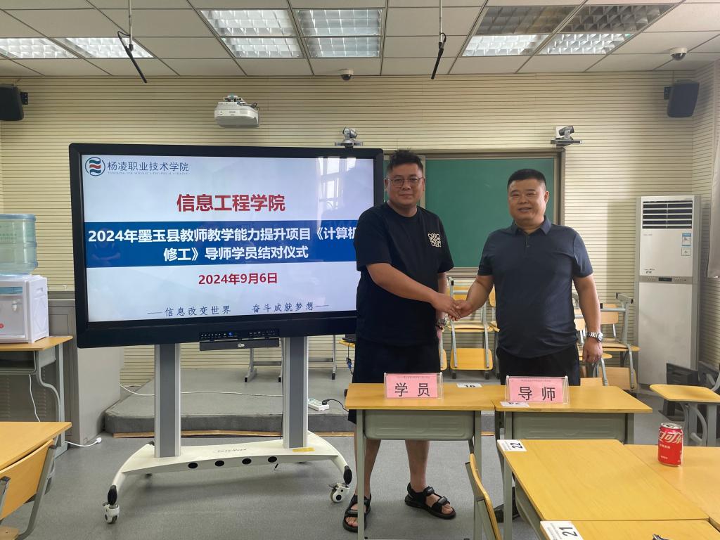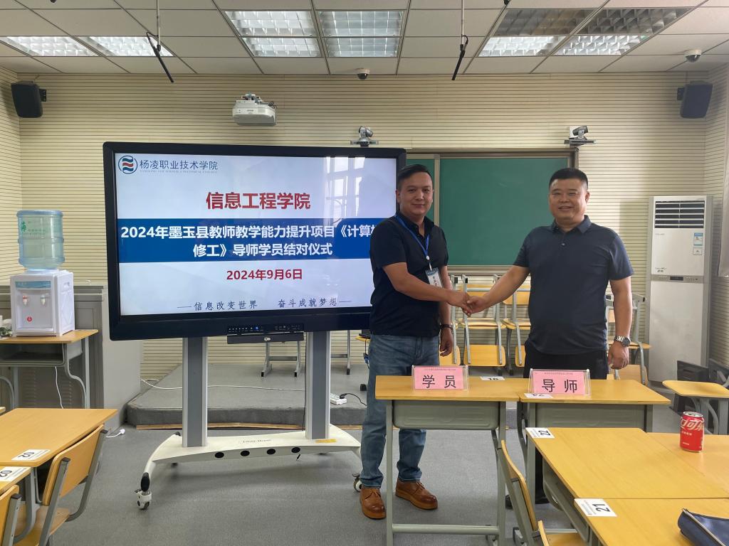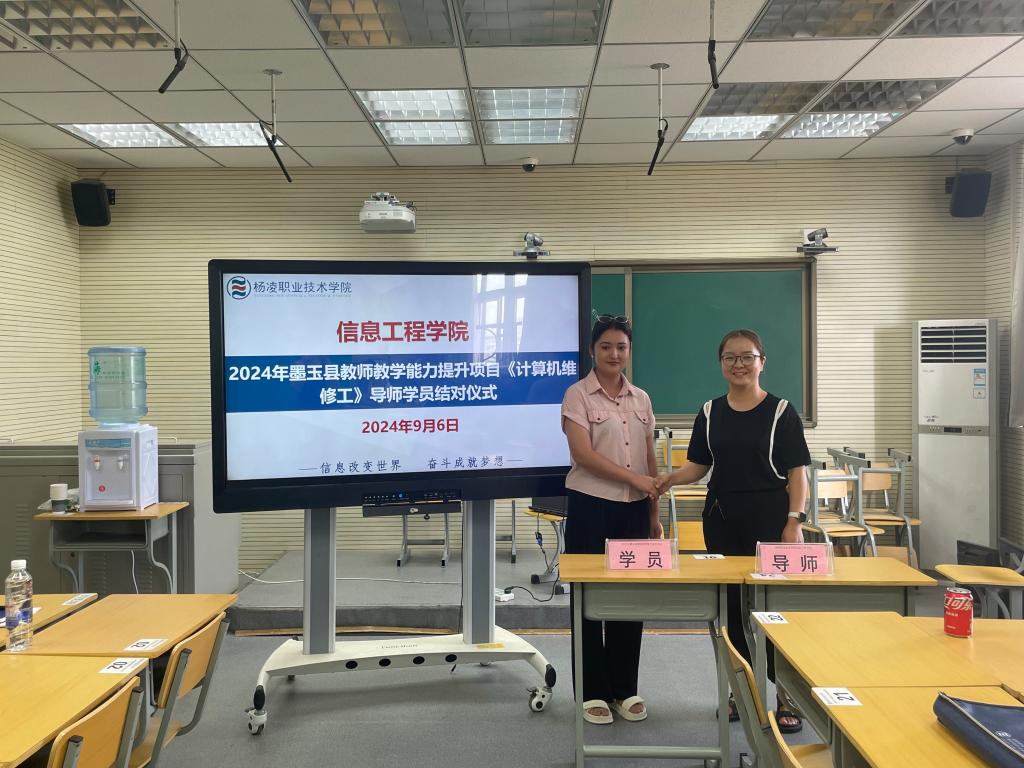 9月6日上午,信息工程学院在醒钟楼D座628举行2024年墨玉县教师能力提升计算机维修项目导师学员结对仪式,学院院长陈高锋、副院长熊刚、网络教研室主任冯春卫、动漫教研室主任黄婉林、教师代表以及墨玉县16位学员等参加,仪式由陈高锋主持。