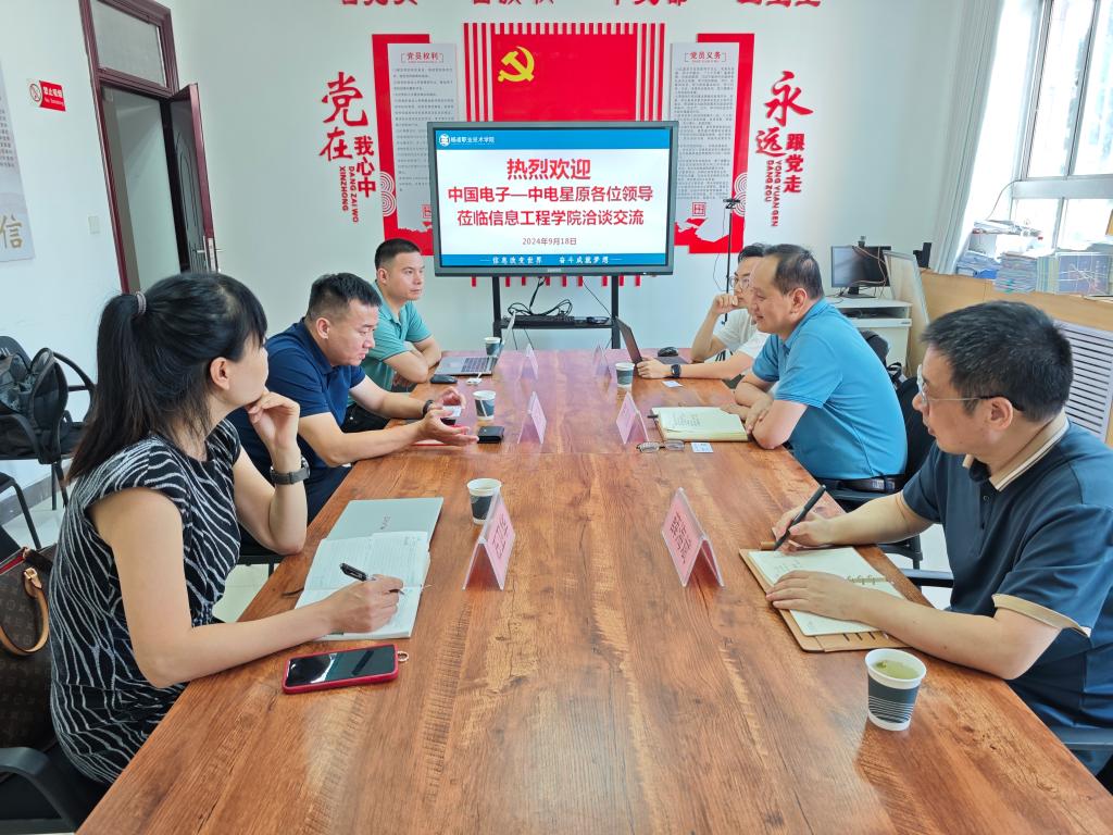 9月18日下午,中国电子—中电星原总经理杨文靖,客户经理石卫华,方案架构师张欢等一行3人莅临信息工程学院洽谈交流,学院院长陈高锋、软件教研室主任薛海斌、通信教研室主任康晋参加座谈。