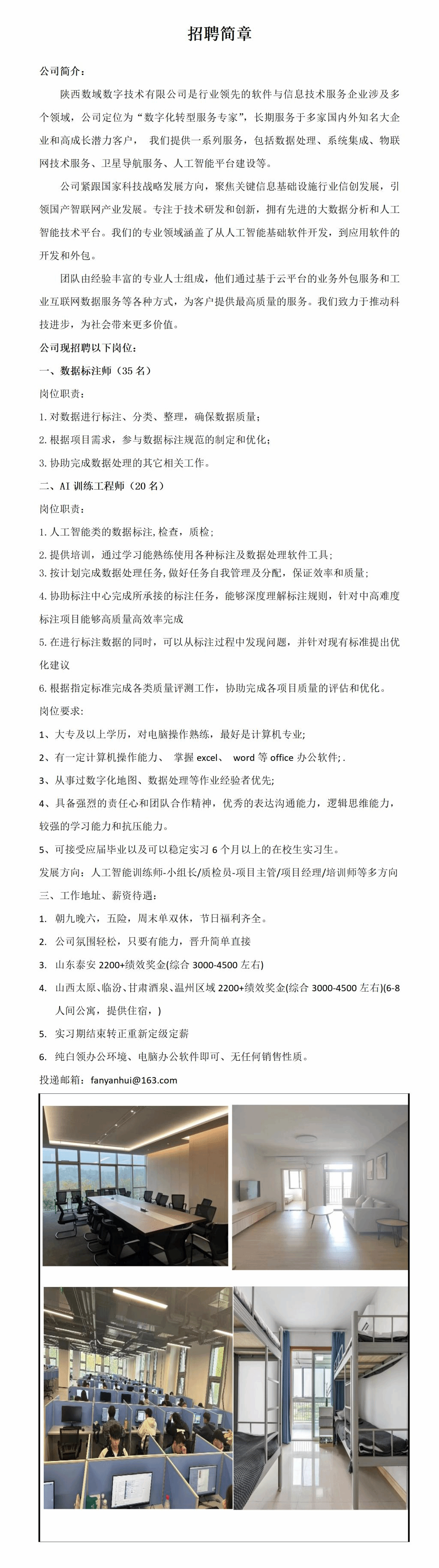 【招聘信息】陕西数域数字技术有限公司招聘简章