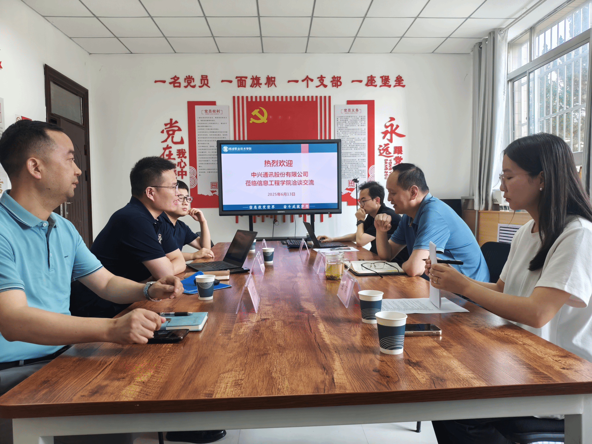6月13日上午,中兴通讯股份有限公司中兴通讯供应链制造基地招聘总监蒋卫中、陕西教育行业市场总监徐阳、合作伙伴(陕西)总经理彭凯文一行莅临我院就校企合作相关事项进行座谈交流。信息工程学院院长陈高锋、通信教研室主任康晋、教师郑莉参加。