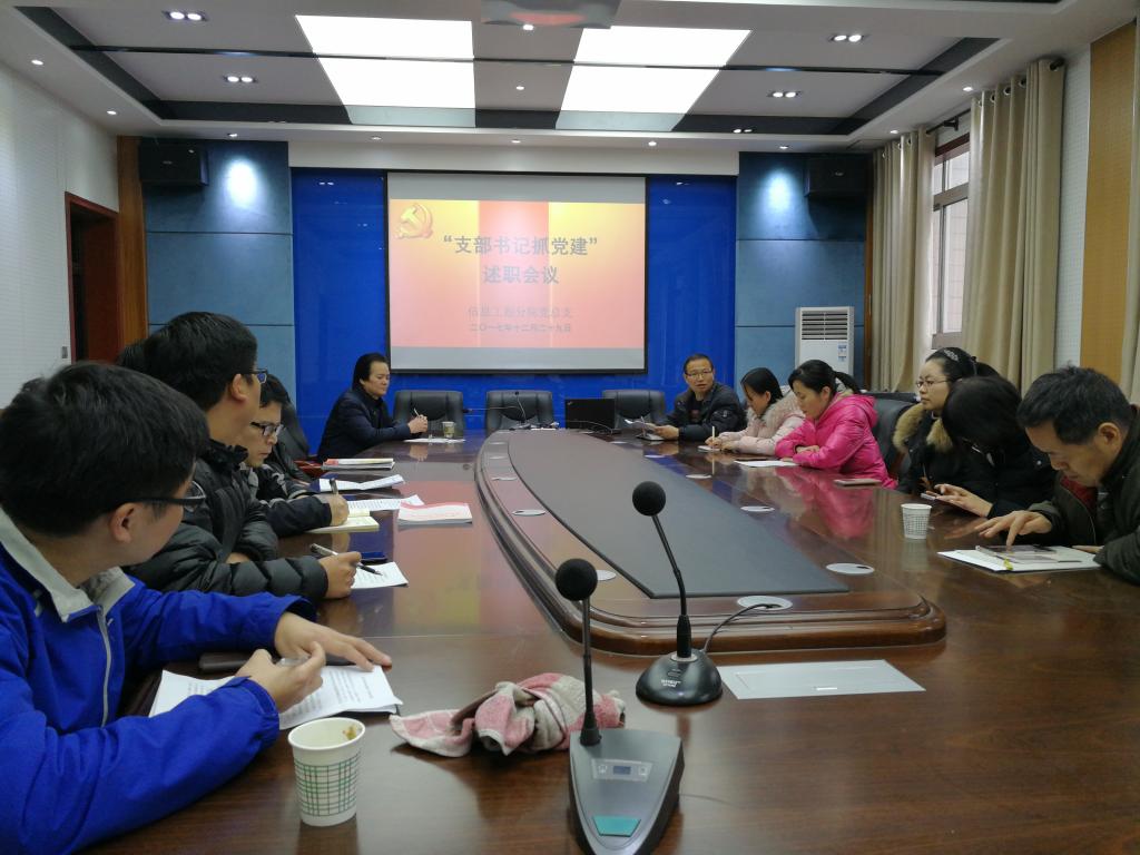 为全面学习贯彻党的十九大精神,深入贯彻落实习近平新时代中国特色社会主义思想,按照新时代党的建设的总要求,推动全面从严治党向基层延伸,按照学院党委《关于开展2017年度党组织书记抓基层党建述职评议考核工作的通知》(党发【2017】32号)要求,2017年12月29日下午,信息工程分院党总支召集总支及各支部委员在秦风楼四楼会议室召开“支部书记抓党建”述职考核会议。
