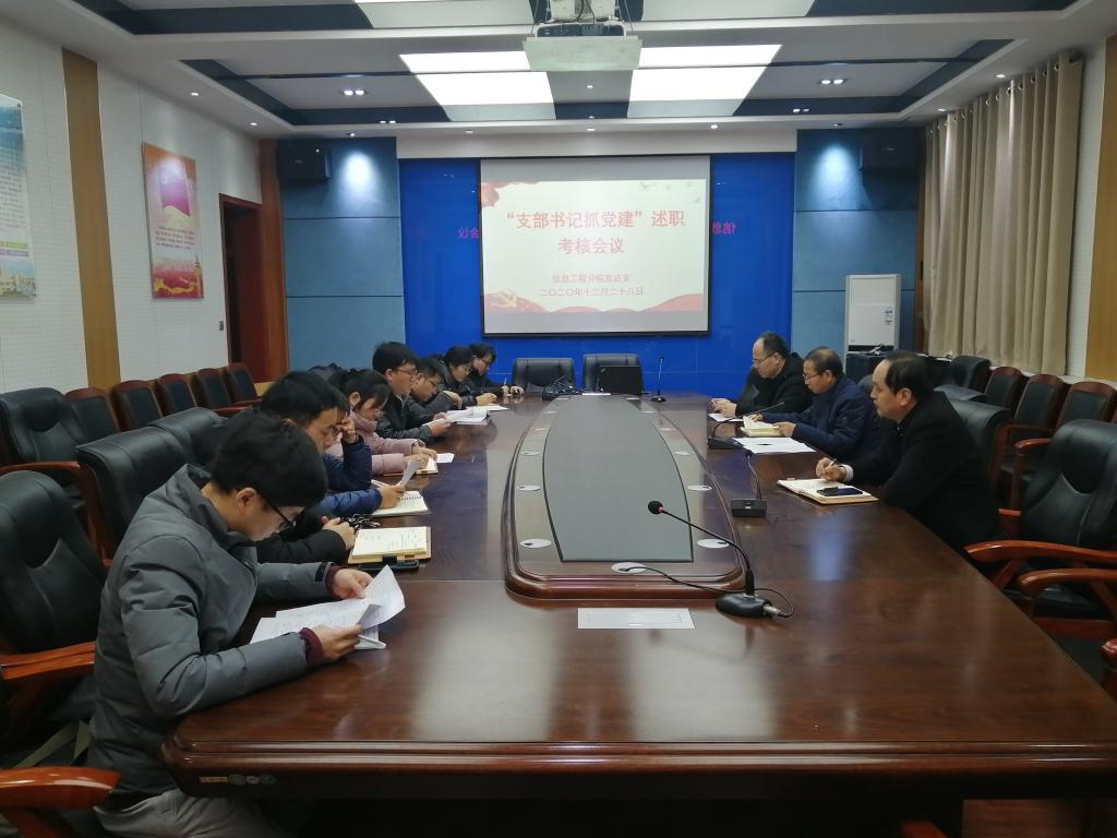 为深入学习贯彻习近平新时代中国特色社会主义思想和党的十九届五中全会精神,全面落实管党治党政治责任,进一步推进全面从严治党向基层延伸,切实提高基层党建工作质量,根据《中共陕西省委教育工委关于开展2020年度高校基层党建述职评议考核工作的通知》(陕教工组办〔2020〕8号)要求,结合学校实际和疫情防控要求,按照学院2020年度基层党组织书记抓党建述职评议考核工作有关事项通知要求,信息工程分院党总支于2020年12月28日,在秦风楼会议室召开了党支部书记抓党建述职测评考核会议,分院党总支委员及各支部书记、教研室主任、副主任参加了会议。