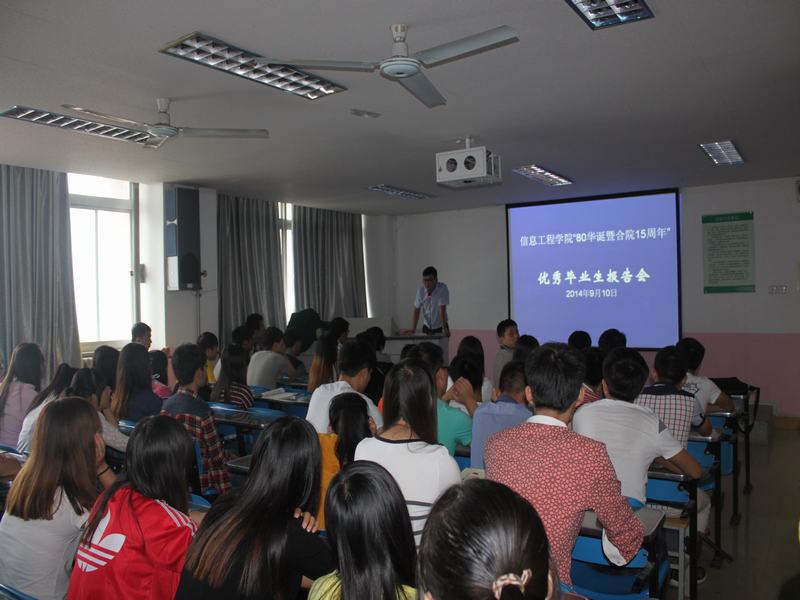 9月10日下午2时30分,在水韵楼举办了“学习职业未来”校友报告会。广州视睿电子科技有限公司西北办事处销售总监、声像08001班学生翟新华、西安新希望信息技术有限公司财务主管、软件07006班学生权小妮、商洛比亚迪实业有限公司第二事业部工程师、电子04006班学生赵亮分别报告了自己学习、就业创业的经历,对学弟学妹们提出了建议。他们的“现身说法”,使在校生深受启发和鼓舞。