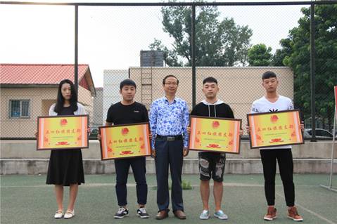 表彰决议宣读结束后,由信息工程分院党总支书记高掌平老师为受到表彰的先进集体颁发了奖牌,以资鼓励。