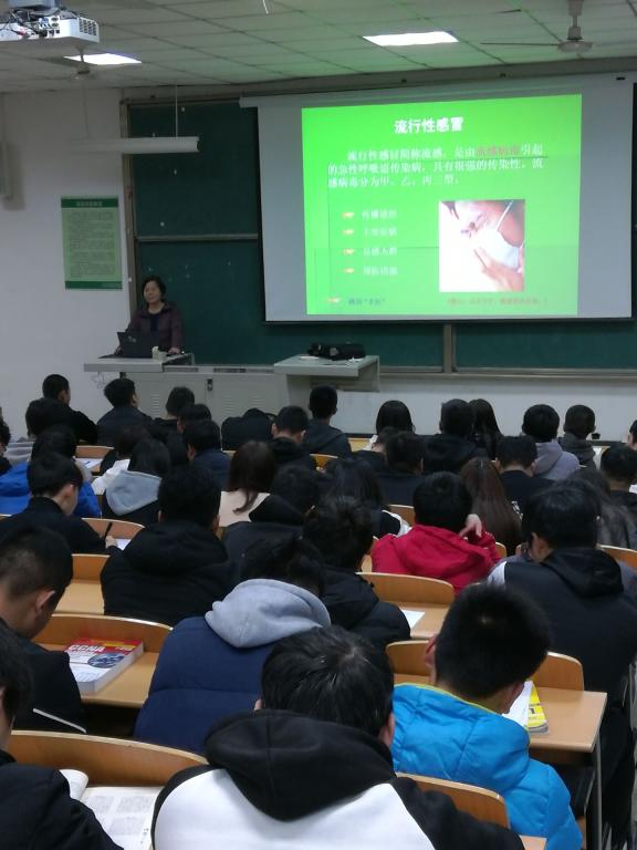 冬季是各类疾病高发的季节,校园人群密集,更是疾病传播爆发的高发地带,为了进一步提高学生的疾病预防意识,引导同学们形成健康的生活方式,营造浓厚的疾病防控氛围,激发广大同学防病的参与热情,展现良好的疾病教育效果, 2018年11月25日,信息工程分院在醒钟楼nob103阶梯教室举办校园传染病防治知识讲座,本次邀请的主讲人为学校医院李荣老师,信息工程分院一、二年级学生干部共200多人到场聆听了讲座。