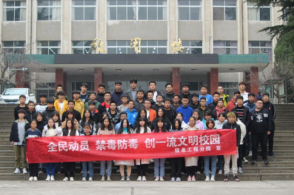 为宣传禁毒防毒相关知识,帮助学生深入了解毒品危害,自觉抵制毒品,倡议身边人远离毒品,做合格公民,11月24日下午,信息工程分院举办主题为“全民动员,禁毒防毒,创一流校园”的禁毒防毒宣传签名活动。