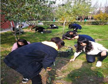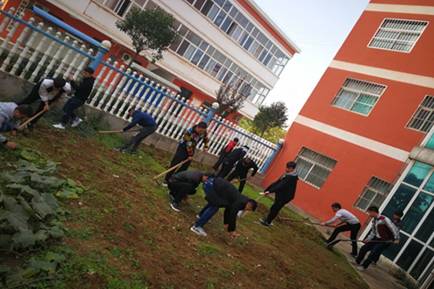 在经了三公里的步行,全体学生到了福利院,做了简单的休整后便开始投入义务劳动。在劳动中每位同学都积极参与,体现了当代大学生吃苦耐劳的品质。