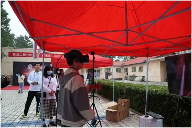 文化节现场分为分院简介区、书画艺术区、摄影作品区、设计作品区和设备体验区。从不同角度展示出了信息工程分院的专业建设成果和同学的实际操作能力。