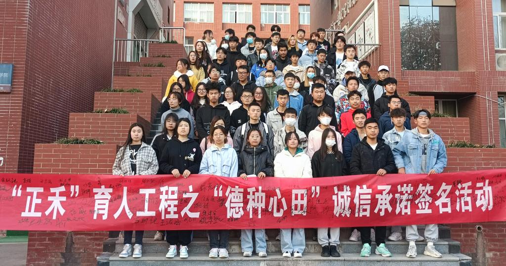 诚信承诺签名活动是“正禾”育人工程“德种心田”项目中的一项认领活动。活动的开展让同学们增强了诚信意识,懂得了诚信的重要性,明确了诚实守信必须从我做起,从现在做起,落实在日常生活学习实践中。