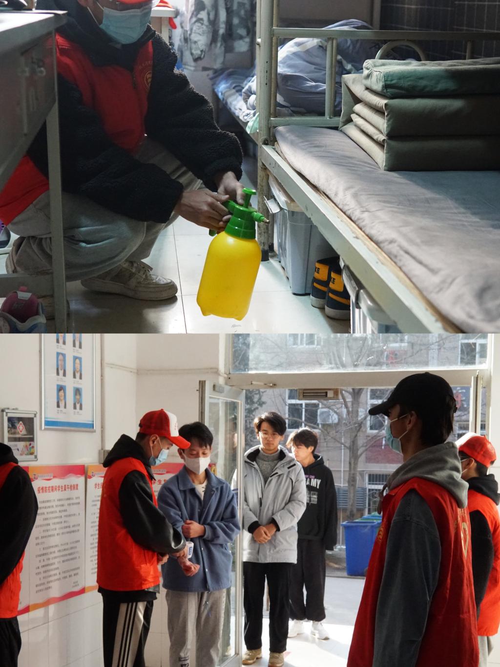 我院应用电子技术21037班的李小兵,就是主动上交“请战书”并郑重地签上名字、印上手印的学生志愿者之一。他说:“我省正在遭受新冠疫情的严重威胁,我写了‘请战书’,第二天就投入到学校值守食堂的任务中,主要是测量体温、提醒师生戴好口罩。后面我也参与了学生宿舍内的洒扫消毒等工作。”