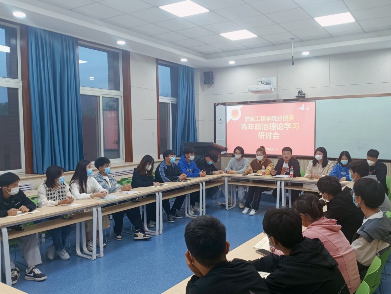 为进一步贯彻落实共青团十八届六中全会精神,系统推进全面从严治团,更好履行共青团作为党的助手和后备军的职责使命,着力提高政治站位,202241日晚于行知楼BOB-319教室,信息工程学院分团委组织召开了青年政治理论学习研讨会。分团委副书记赵朋波老师及分团委主要学生干部、2021级团支书参加了此次会议。