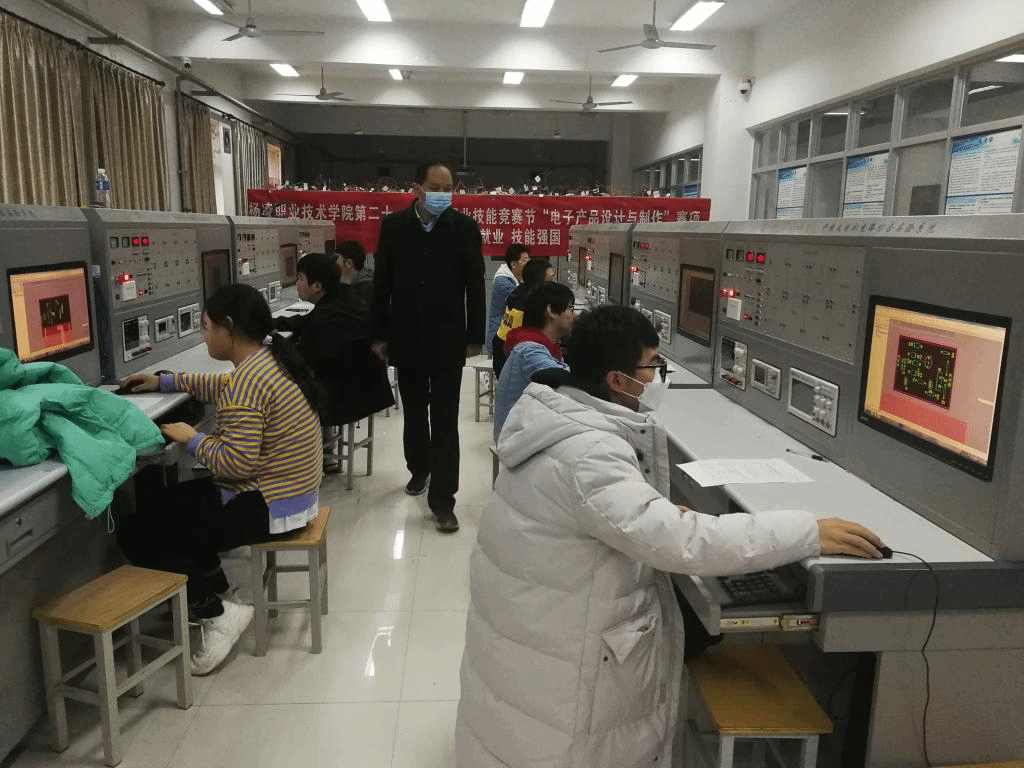 11月26日,第二十一届学生职业技能竞赛节“电子产品设计与制作”竞赛项目的决赛在醒钟楼NOD623模拟电子技术实训室成功举行。