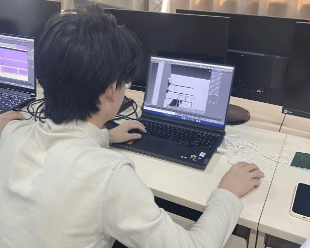 为确保赛事专业性与公平性,专任教师团队多次研讨,依据行业前沿趋势与教学大纲,对接省级技能竞赛标准制定竞赛内容与规程。经过前期组织宣传,初赛共计84人报名参加,经过激烈角逐后38名参赛选手进入决赛,决赛聚焦三维动画制作核心板块,着重考验选手在角色动画设计、动作流畅度制作的能力,全方位检验学生专业知识整合与实操水平。学院领导也始终将技能竞赛作为提升教育教学质量、检验人才培养成效的关键抓手,给予本次 “数字艺术设计” 赛项高度重视。决赛当日,学院领导亲临现场观摩视察比赛。