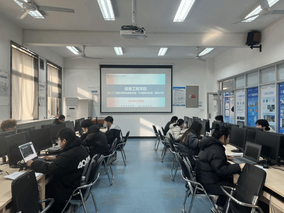 2024年12月8日,第二十二届学生职业技能竞赛节项目决赛环节在醒钟楼NOD501、502、505现代通信技术技术实训室成功举行。共计13名学生参加了本次比赛。