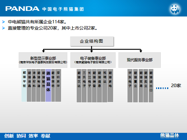 南京中电熊猫晶体科技有限公司为国家高新技术企业、国家级专精特新“小巨人”企业、国家“科改示范企业”。全国电子元件协会先进单位、全国压电晶体行业分会副理事长单位、江苏省企业技术中心、江苏省石英晶体元器件工程技术研究中心、南京市企业技术中心、南京市石英晶体元器件工程技术研究中心、南京市突出贡献企业、南京市百强成长型企业、南京市高成长科技创新型百优企业。2018年至2021年获得授权专利30项,其中发明专利5项;在申请专利18项,其中发明专利12项;软件著作权8项;参与起草的2项国家标准已颁布实施。