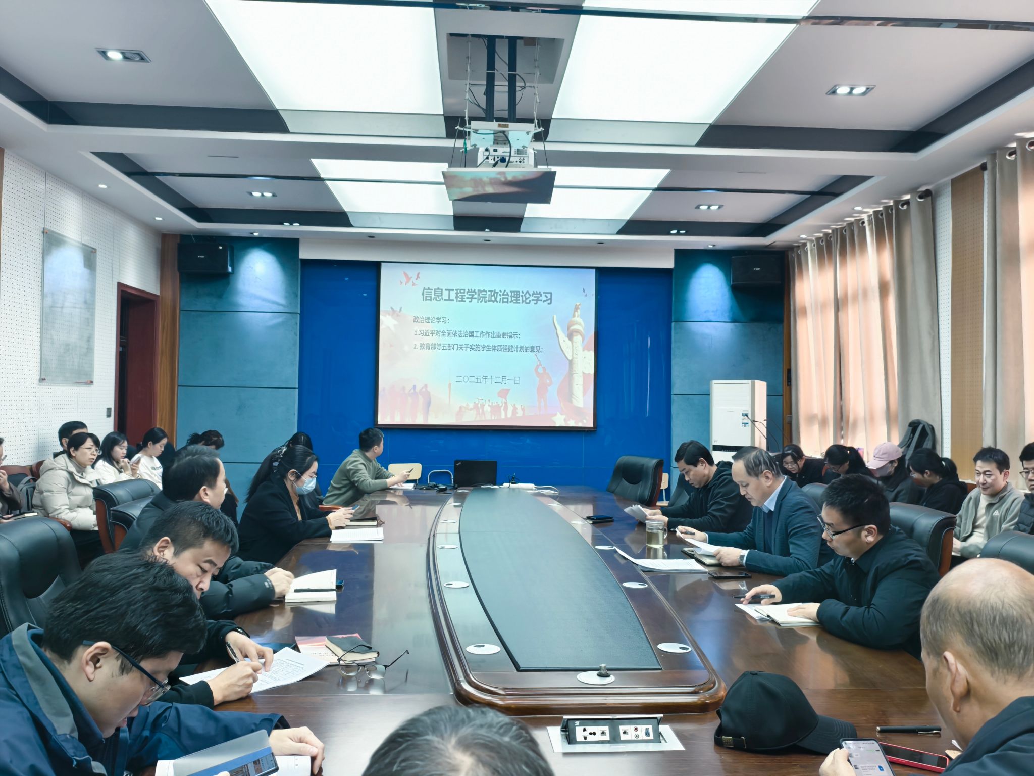 按照学院党总支政治理论学习计划安排,12月1日下午,信息工程学院党总支组织全体教职工在秦风楼四楼会议室开展政治理论学习。