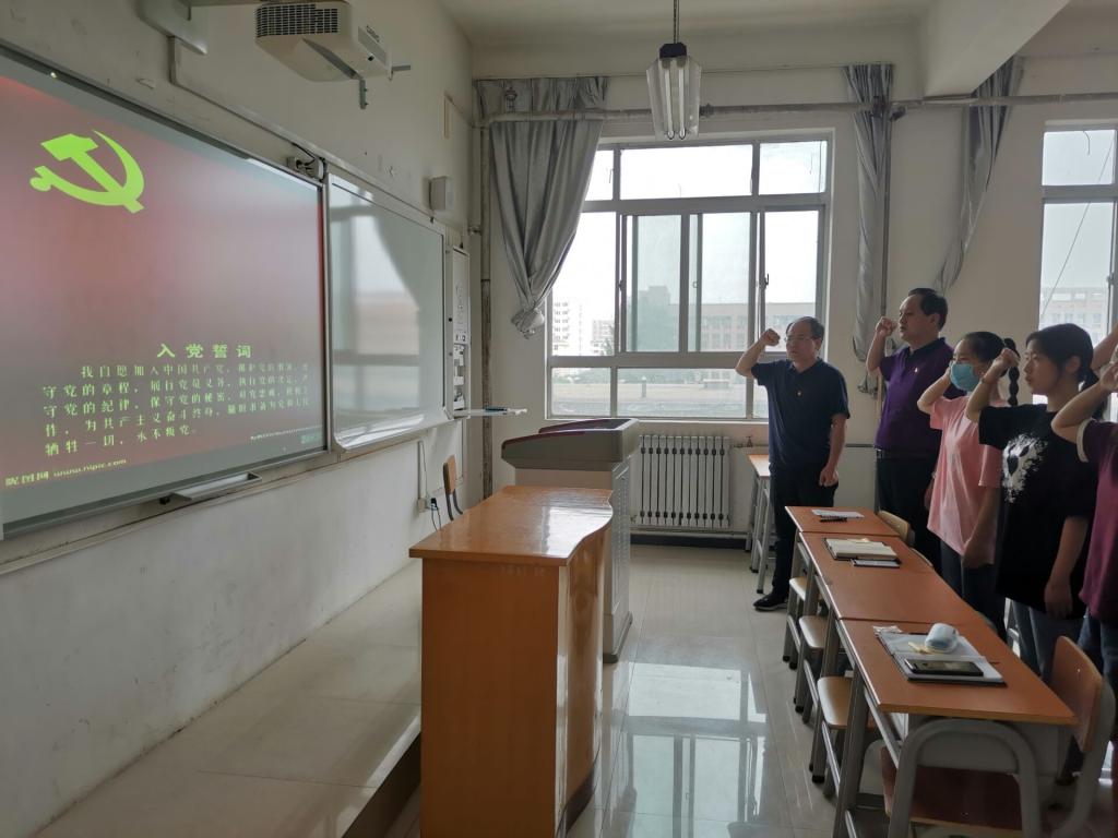 直播党课和讨论结束后,组织现场党员面对党旗重温了入党誓言,在场党员分别向党送出了生日祝福。