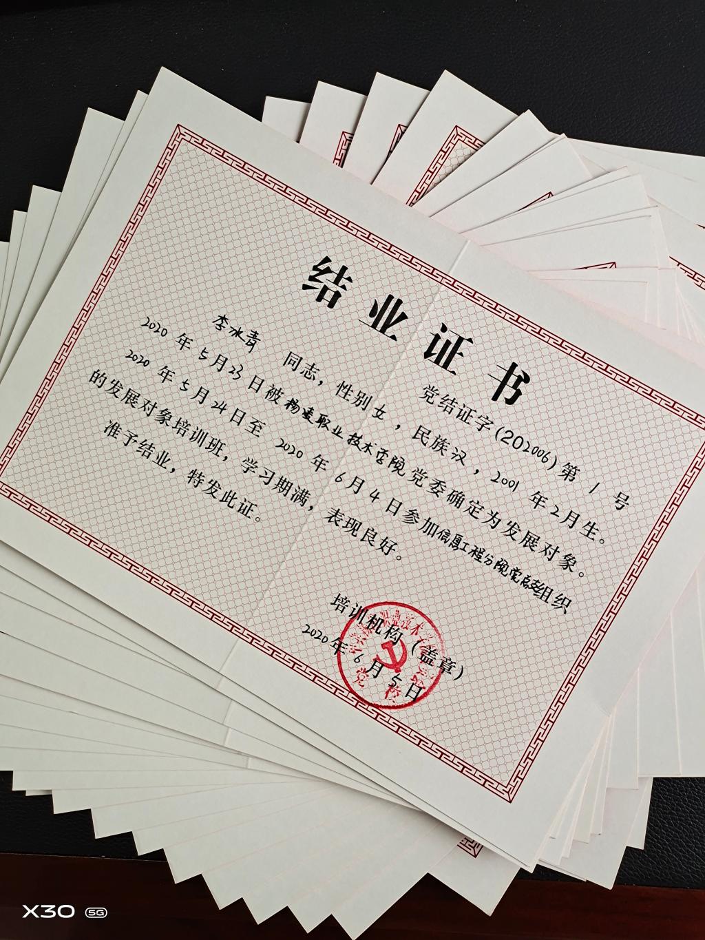 按照学院党委关于2020年发展党员工作总体部署,信息工程分院党总支自5月24日起至6月5日组织对2020年上半年确定的38名发展对象进行了短期集中培训,目前已圆满完成所有培训任务,38名发展对象已顺利完成学习考核并取得结业证书。