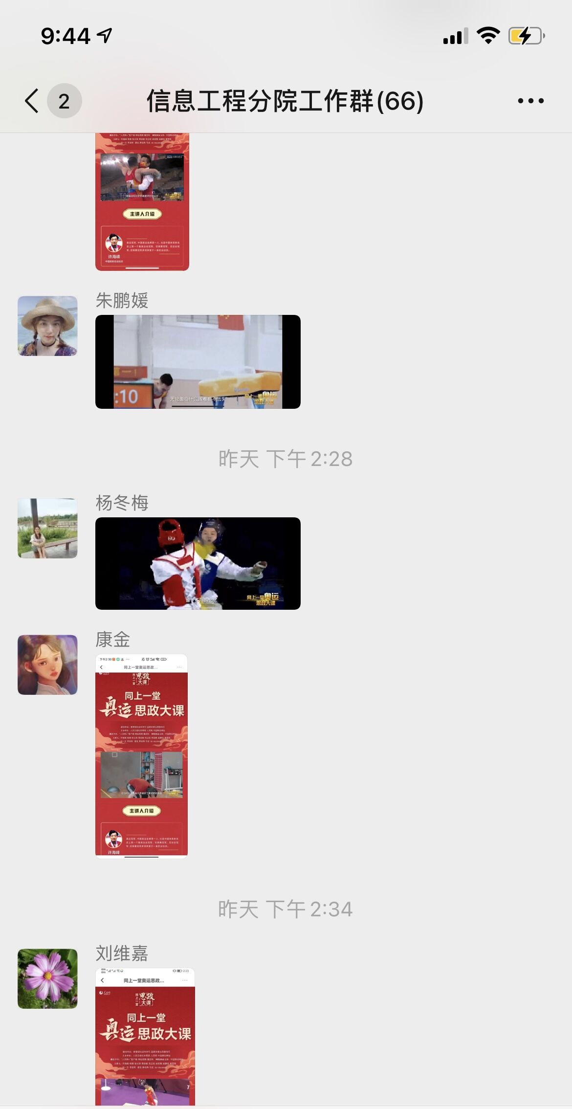 在观看精彩的直播之后,信息工程学院的师生们又通过小组讨论、线上交流等方式交流了此次学习感受。同学们纷纷表示,作为新时代的青年,将保持积极向上、奋斗拼搏的精神风貌,在拼搏历程中砥砺前行,发扬“更高、更快、更强、更团结”的奥林匹克精神,努力去迎接属于自己的“奥运”。教师们在工作交流群中也都表示,将会把本次思政大课的感受、体会、收获融入日常教学中,让广大学生更好的了解奥运精神,坚定“四个自信”,不断提升课堂教学的有效性。