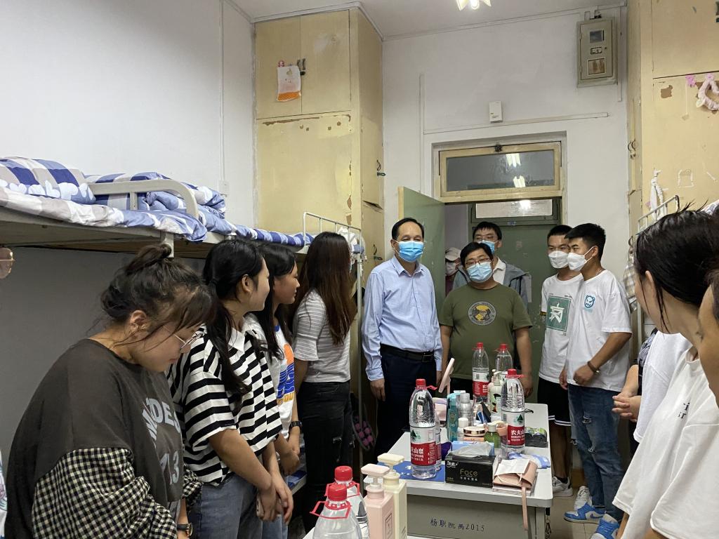 2021年9月4日19:00,信息工程学院党总支副书记吴高潮、副院长陈高锋、院办主任王巍、学工办主任任争峰等学院领导及辅导员张齐、王茜等,深入北校区302、303、304学生公寓看望2021级新生。