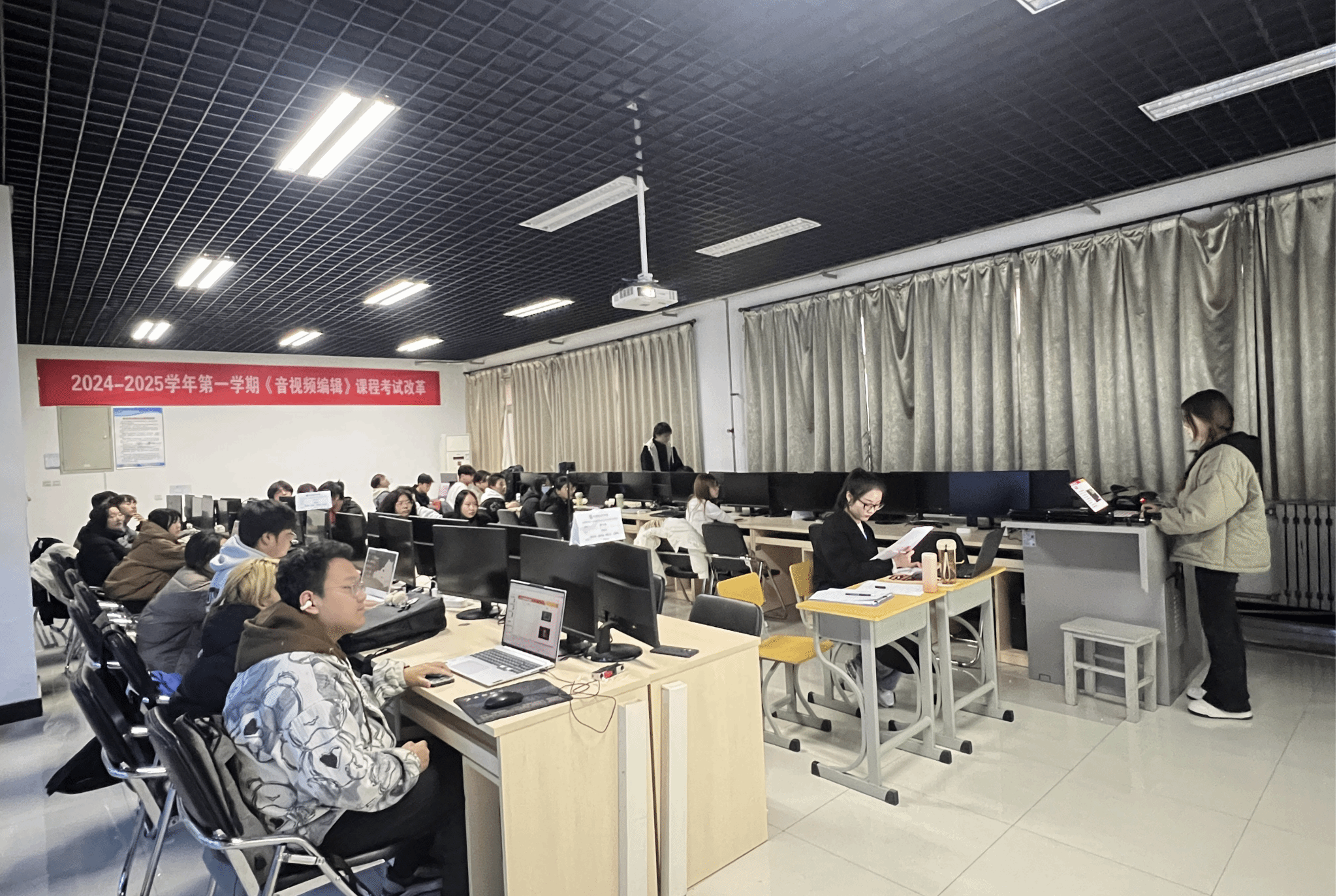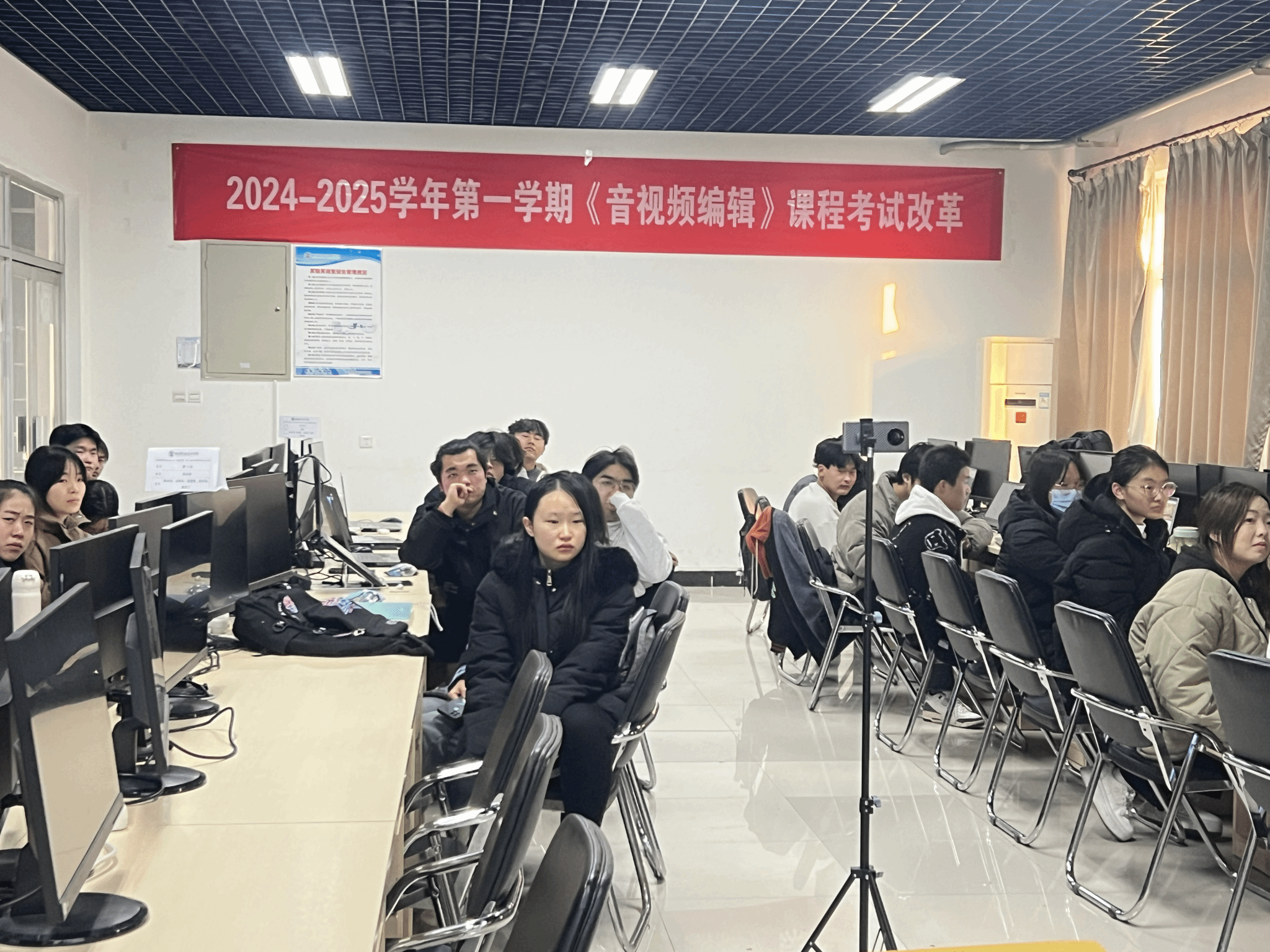为深化新时代教育评价改革,有效推动课程建设和教学质量,2024年12月24日,动漫制作技术专业2023级《音视频编辑》课程考试改革于醒钟楼NOD629、NOD635、NOD637实训室顺利举行。