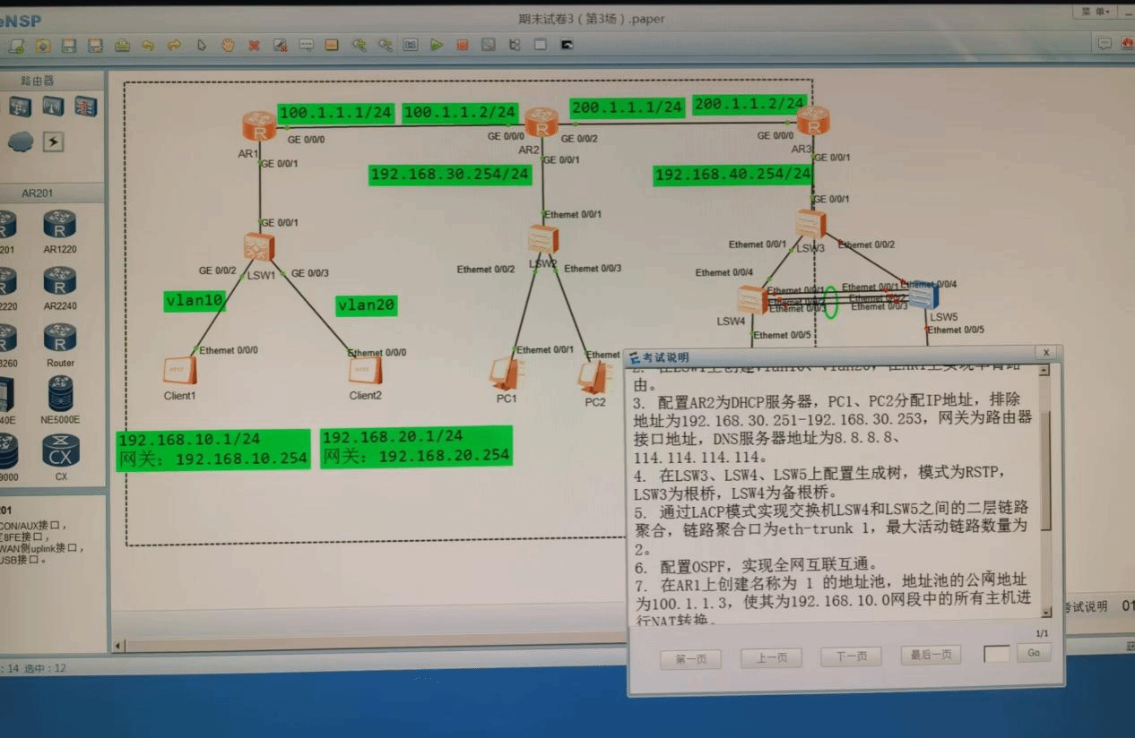 为了深度整合《网络互联技术》课程的理论知识与实践技能,确保学生在掌握网络拓扑结构、路由交换原理、网络安全基础等理论知识的基础上,能够熟练进行网络设备(路由器、交换机、防火墙等)的配置与调试,具备构建和维护中小型企业网络的实际操作能力,负责人带领教学团队设计并采用试卷工程考试系统,有效利用eNSP网络仿真平台,考试内容紧贴网络组建实际场景,实现基于软件的网络设备配置考试,有效地解决了物理网络设备数量不足的问题,考试系统通过学生的配置自动判卷,减轻了老师阅卷的工作量,同时也保障了考试成绩的客观和公正。