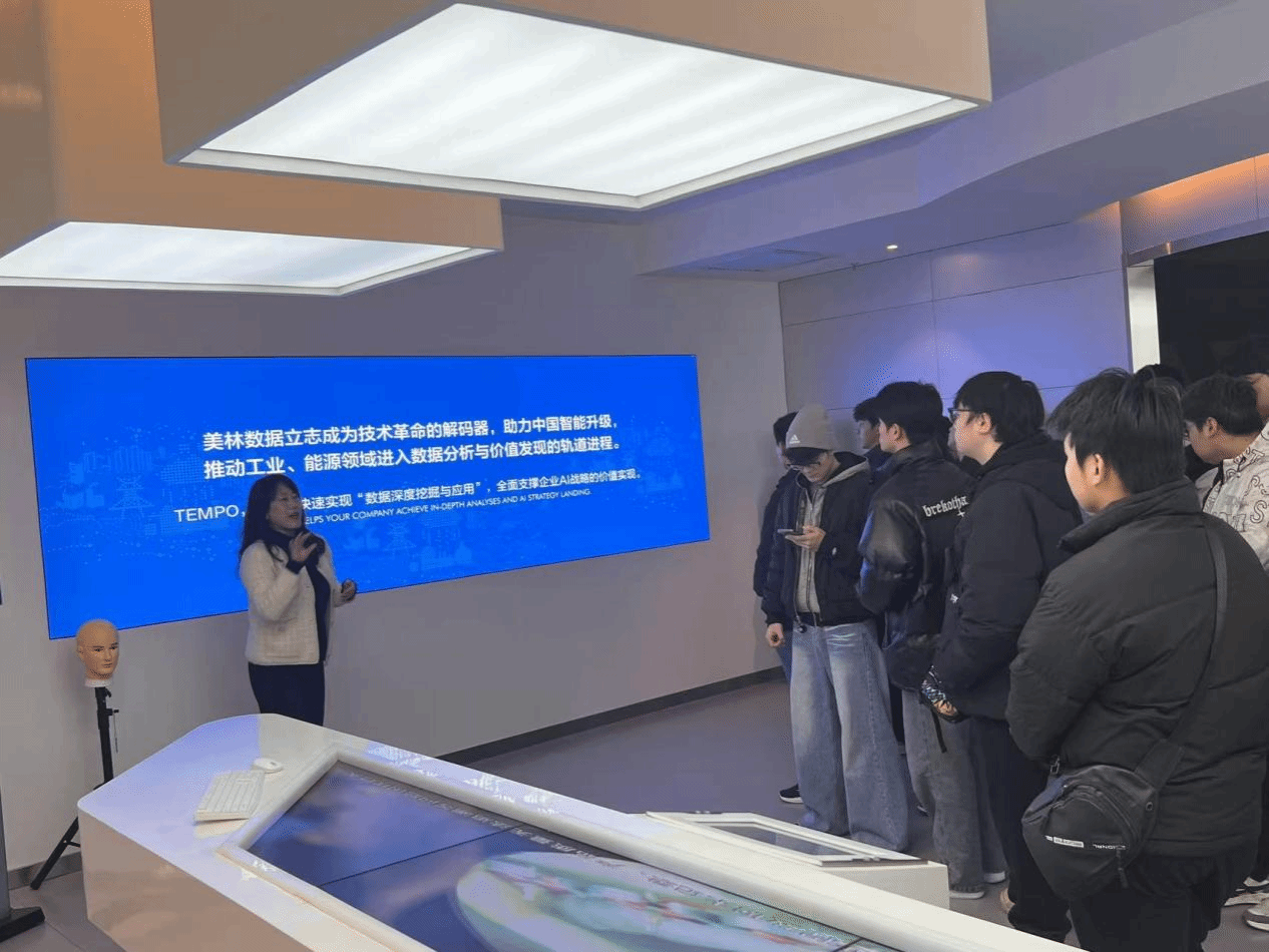 在西安美林数据技术股份有限公司,学生们受到了公司员工的热情接待。美林数据作为本地大数据行业的佼佼者,以其卓越的专业实力和深厚的企业文化吸引了众多学子。在专业讲解员的带领下,学生们参观了公司总部和“大数据”展厅,了解了公司的办公环境、研发实力以及在大数据领域的突出贡献。展厅内,各类智能化的制造设备和前沿的工艺流程展示让学生们大开眼界,仿佛为他们打开了一扇通往未来制造世界的之门。随后,美林数据公司为学生们进行了讲座,详细介绍了大数据专业的行业发展、岗位需求以及对同学们的美好期望。这一讲座为学生们未来的职业规划提供了重要的参考,使他们更加明确了自己的学习方向和职业目标。