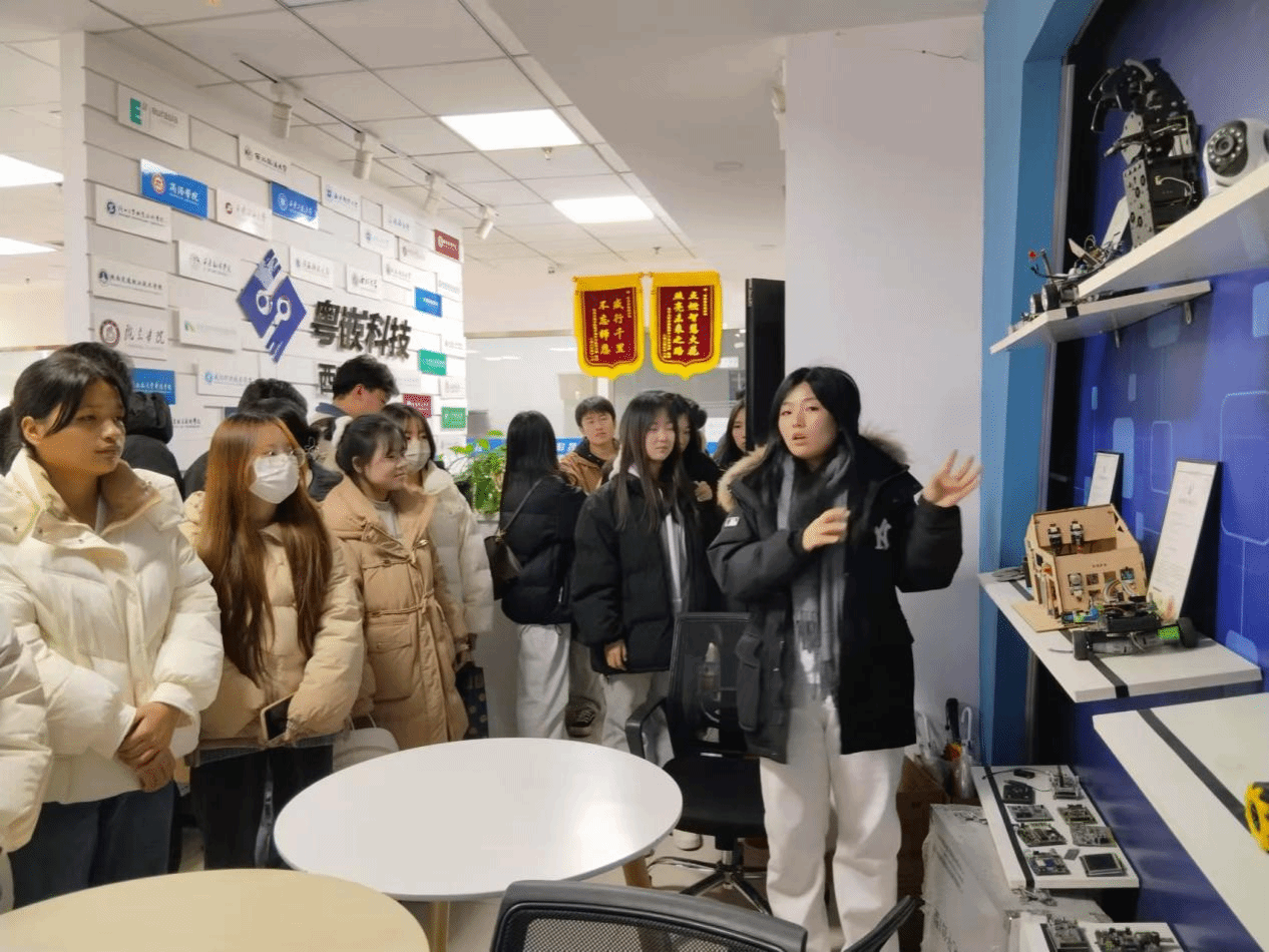 在西安粤嵌信息科技有限公司,学生们同样收获颇丰。该企业以嵌入式、物联网、VR技术、智能制造、大数据、云计算等为主要研究方向,拥有强大的研发实力和丰富的项目经验。在分中心负责人的带领下,学生们参观了研发中心,了解了企业文化与企业发展历程,并感受了企业的办公氛围与生活环境。