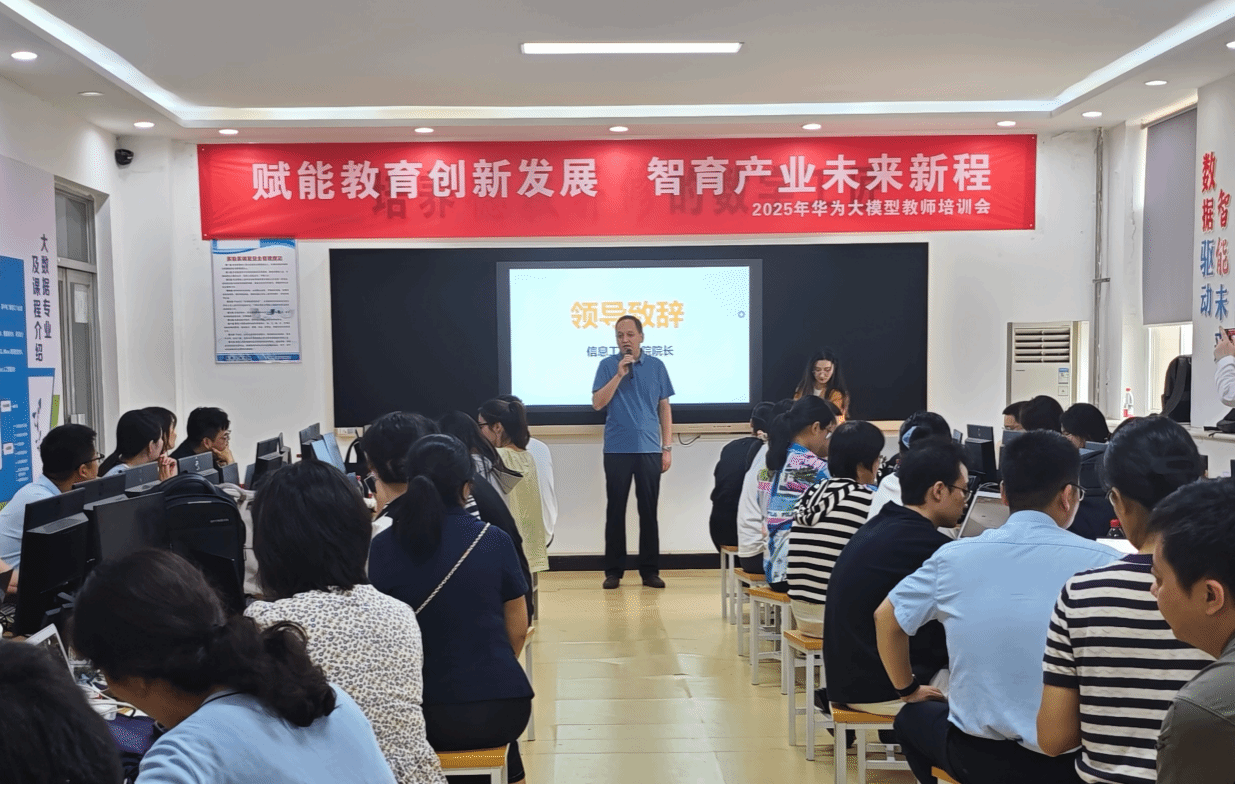 为提升学院教师队伍数字化办公能力与效能,加速教育教学及管理工作的数字化转型进程,我院特邀请华为技术有限公司于2025年6月14日至15日成功举办了为期两天的“智算通用技术培训——AI大模型使能办公效率提升”专题培训。本次培训面向学院全体教师,聚焦AI大模型在核心办公场景中的落地应用。