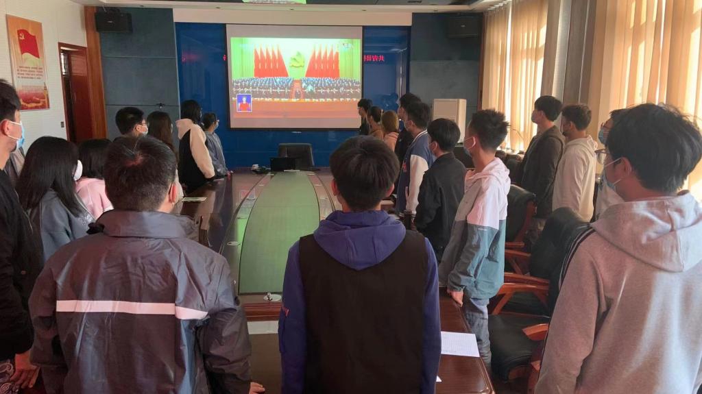 信息工程学院团学学生干部在秦风楼四楼会议室共同收看党的二十大盛况