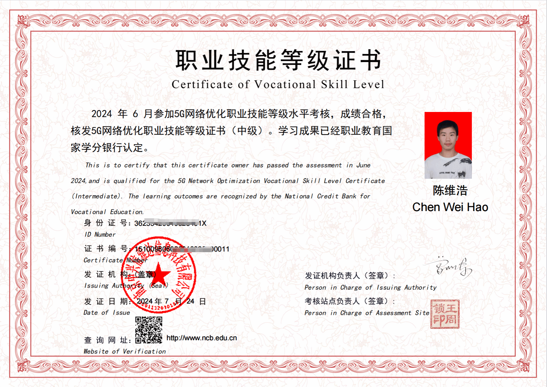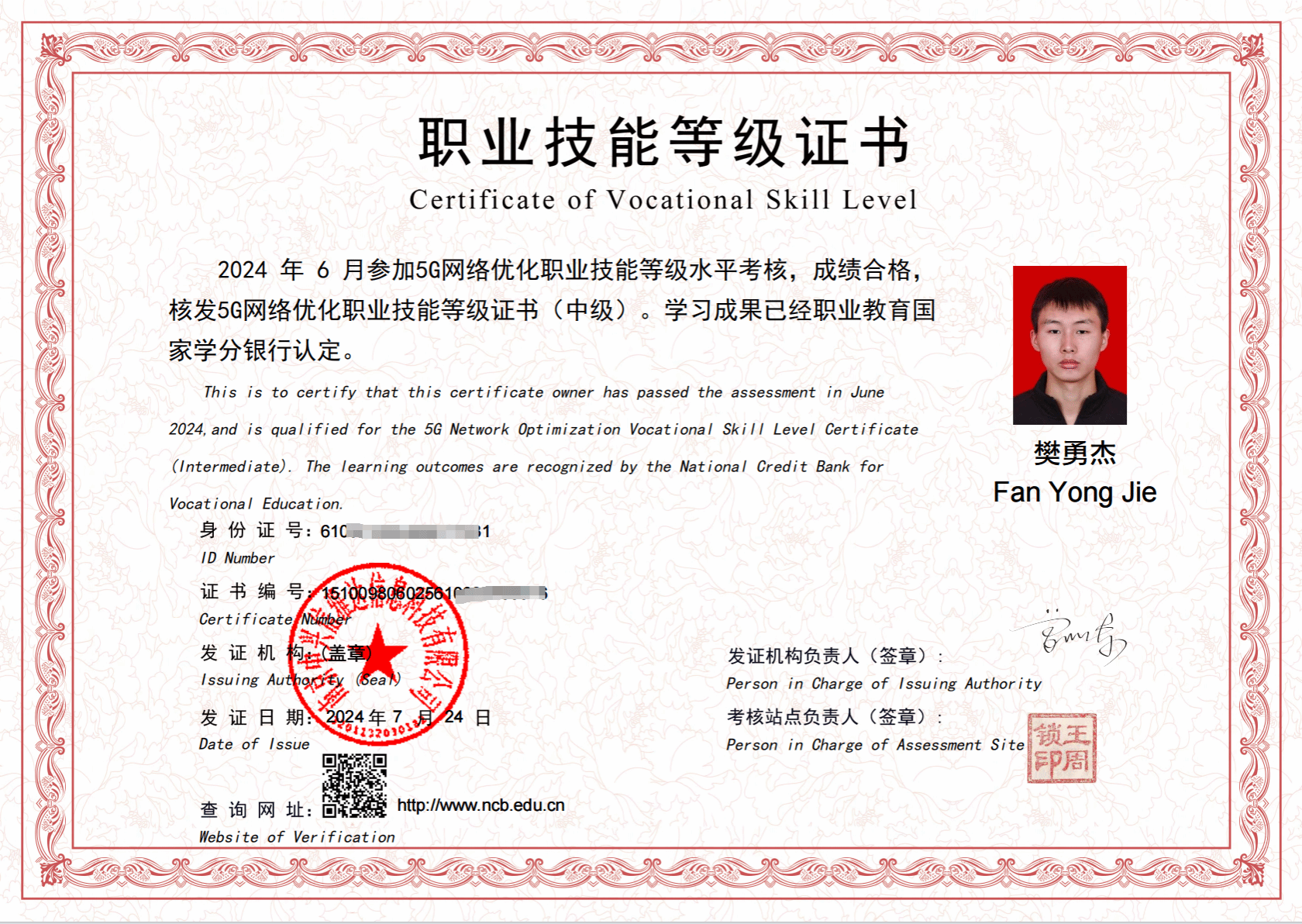 现代通信专业2022级樊勇杰5G网络优化职业技能等级证书