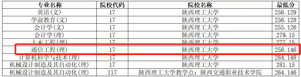 2025年陕西省专升本电子信息大类所能考取的最好公办本科院校为陕西理工大学,其通信工程专业录取分数为258分,而该校计算机科学与技术专业录取分数高达284分,由此可见,现代通信技术专业专升本的难度远远低于其他电子信息类专业。